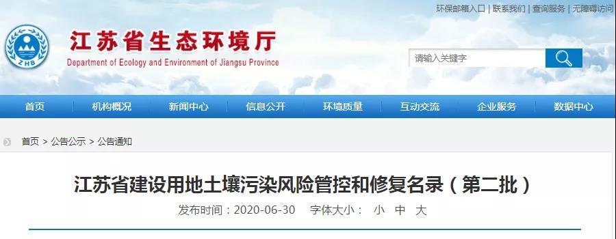江蘇省生態環境公布廳江蘇省建設用地土壤污染風險管控和修復名錄(第二批)